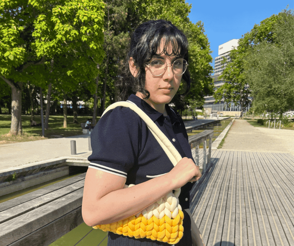 Sac tricoté avec une pelote rembourrée 80% polyester, 20% coton, impression coton.